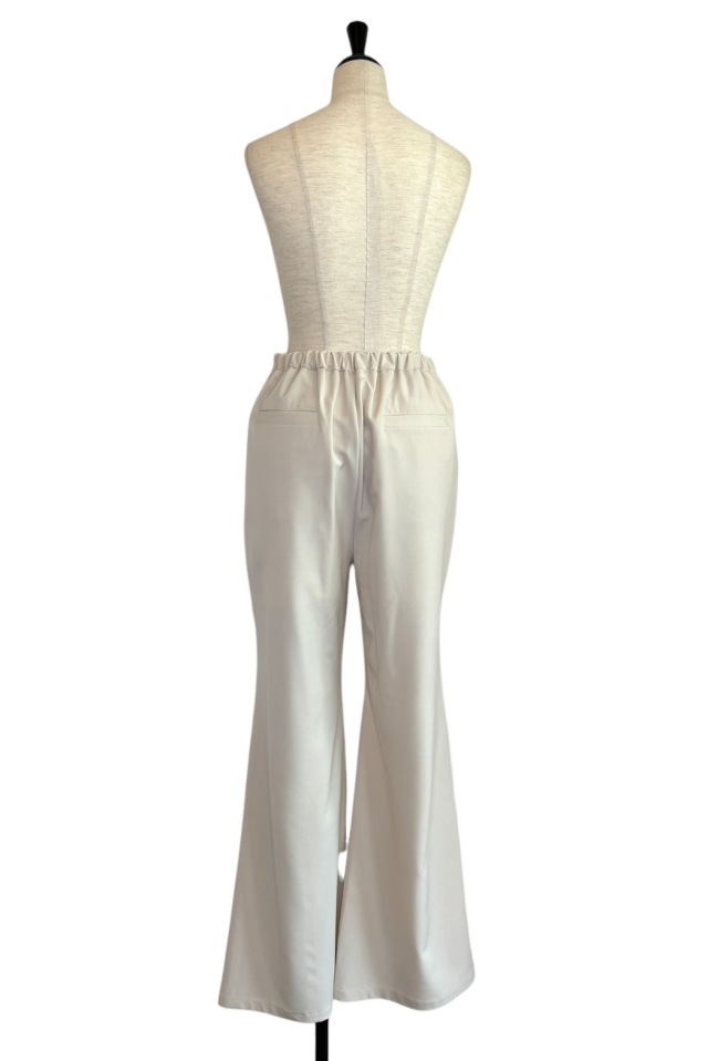 ハイウエストから裾に向かって広がるフレアラインが、脚をすらっと長く見せてくれます。