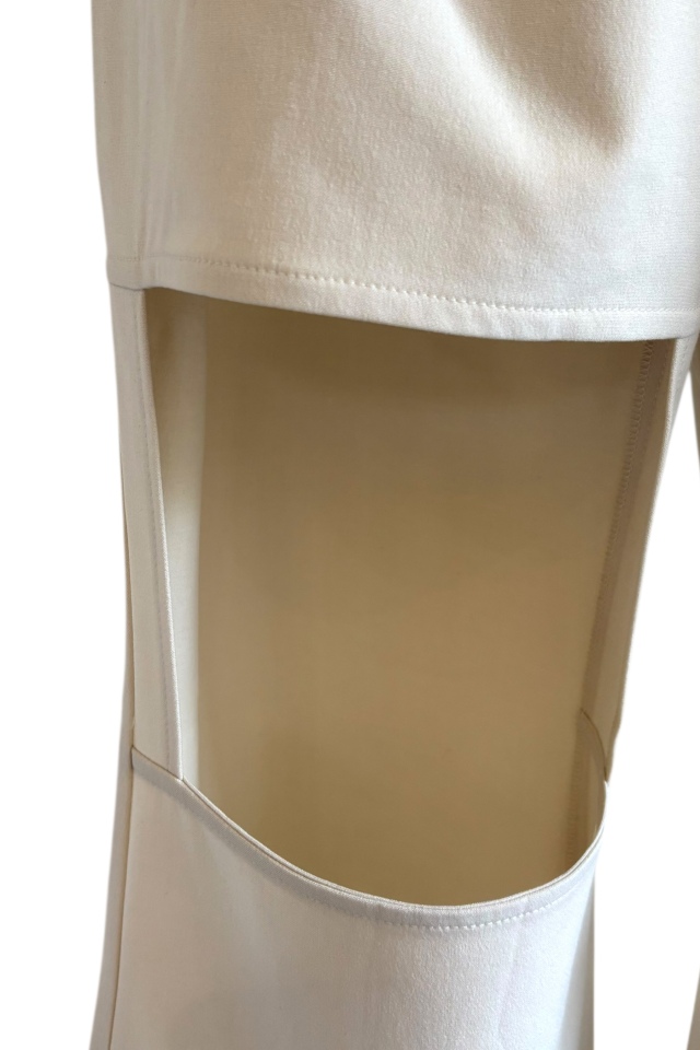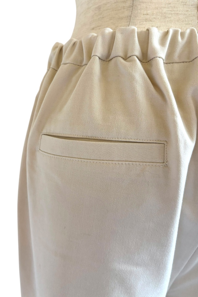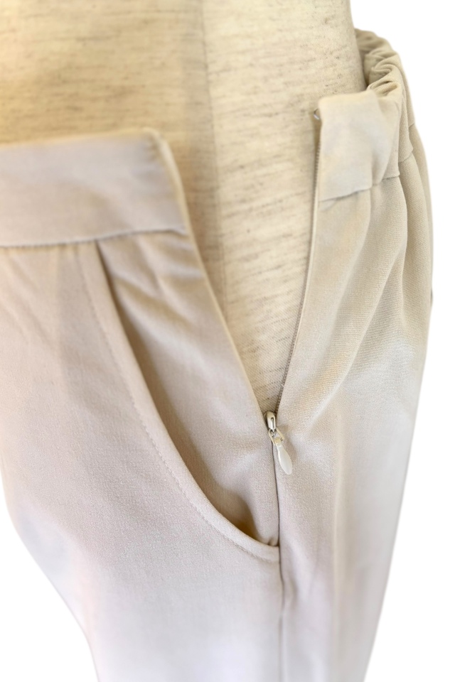 バックウエストゴム仕様で、きれい見えと快適な穿き心地を両立した一着です。
