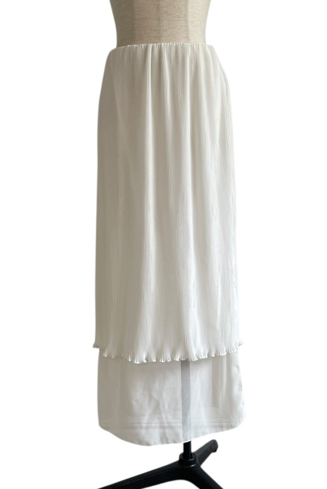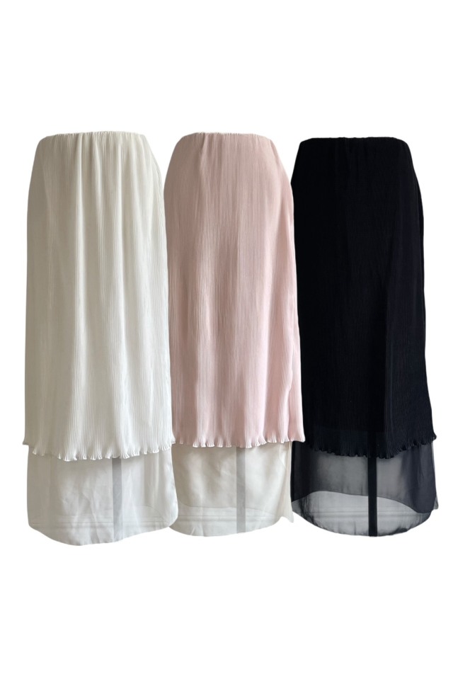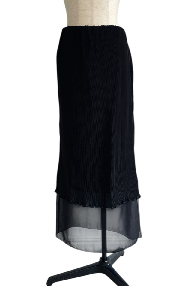 繊細なプリーツとシアーなシフォンを重ねた、MAISON ELLIEらしいロングスカート。