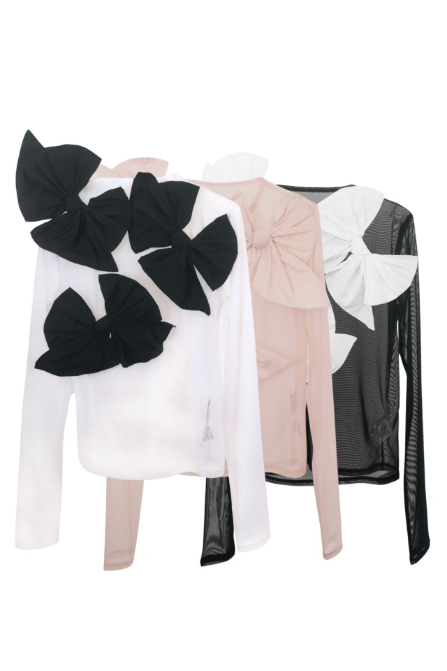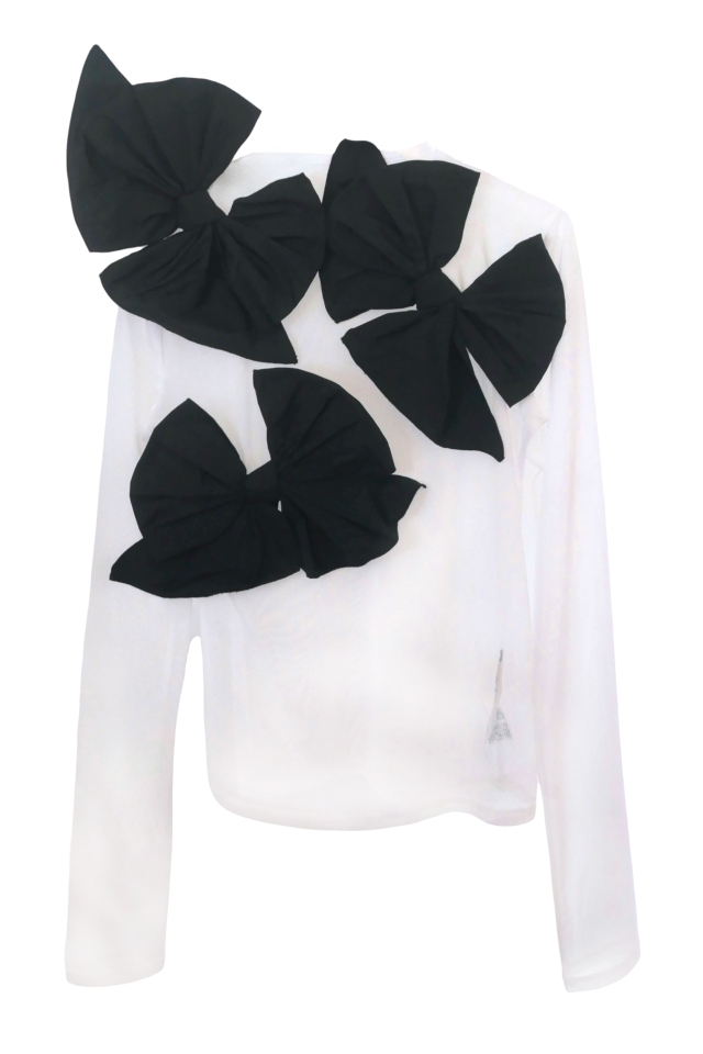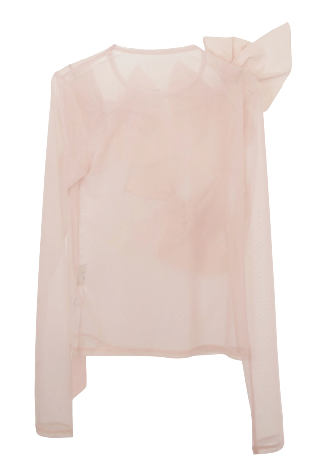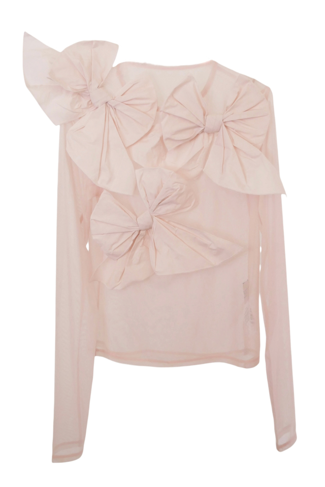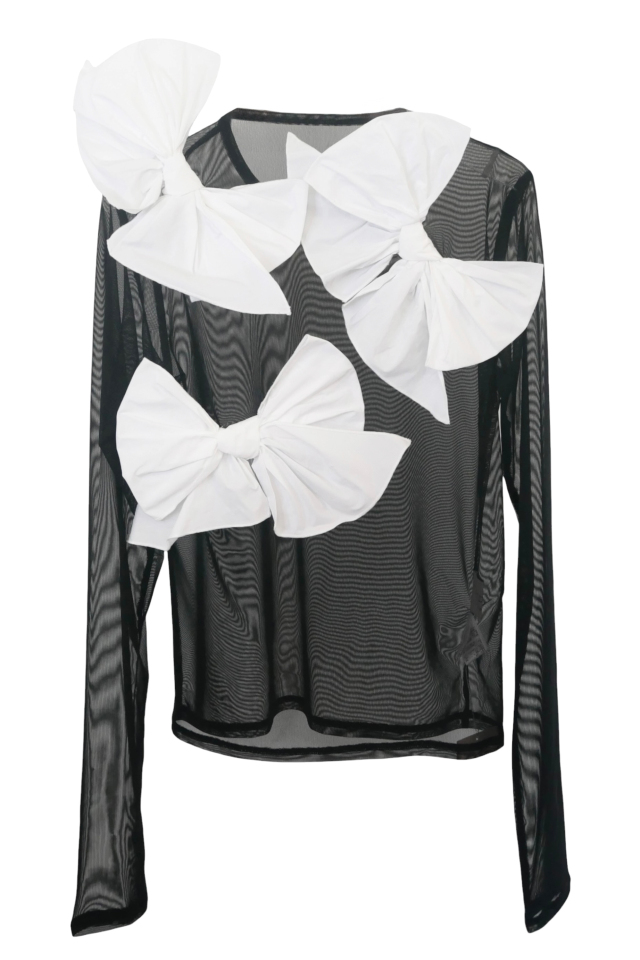 立体的なタフタリボンを贅沢にあしらった、ドレッシーなシアートップス。