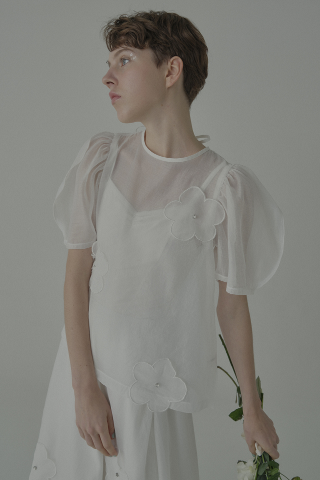 同素材の flower organdie flare skirt(P26S1-DR-SK03), flower organdie tiered one-piece(P26S1-DR-OP01),との合わせもおすすめ