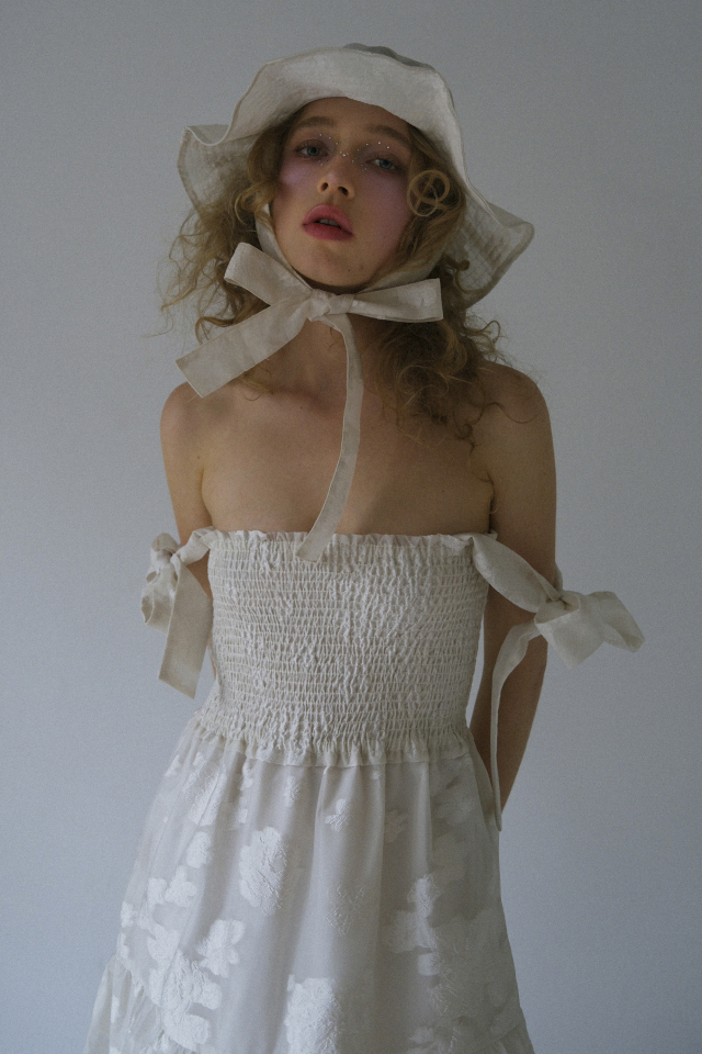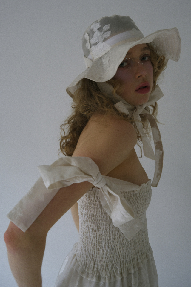 WHITE/BLACKは同素材のflower organdie ribbon bucket hat(P26S2-CS-HT01 )とリンクした展開。