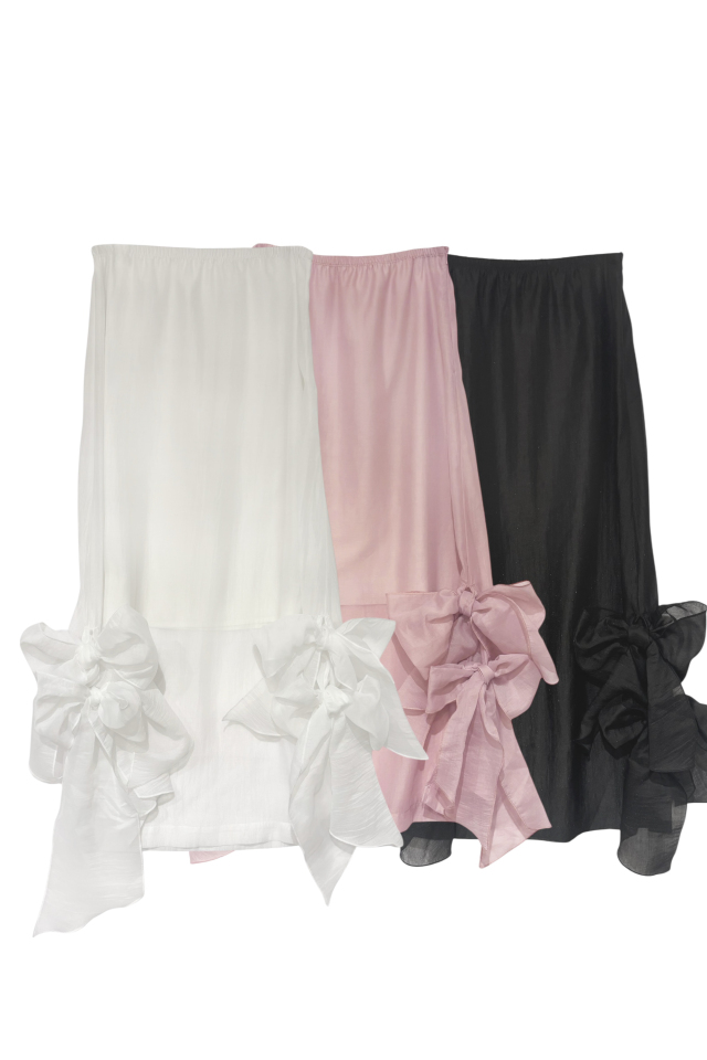 大胆なリボンディテールが目を惹く、存在感のあるロングスカート。