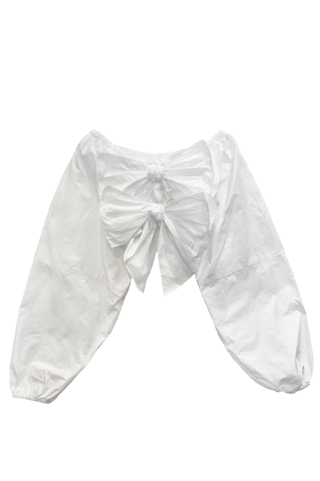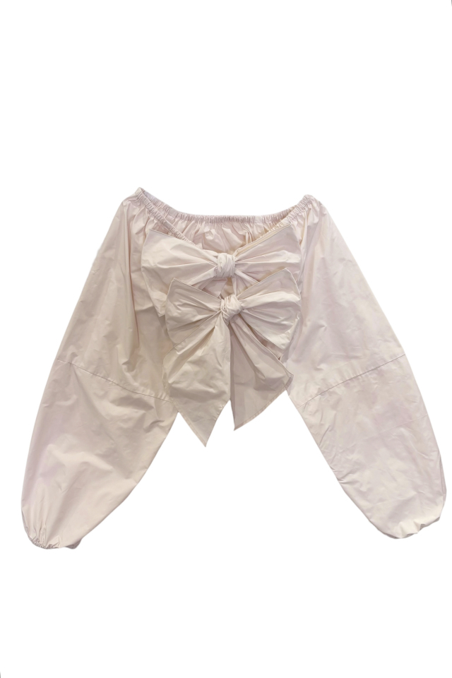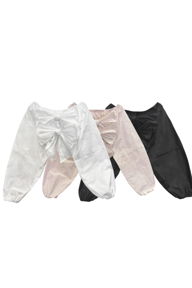 取り外し可能なリボンで印象を変えられ、オフショルダーとしてもお楽しみいただけます。