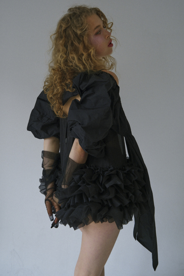 華やかさを纏いながらも、甘さに寄りすぎない絶妙なバランスが魅力の一着です。